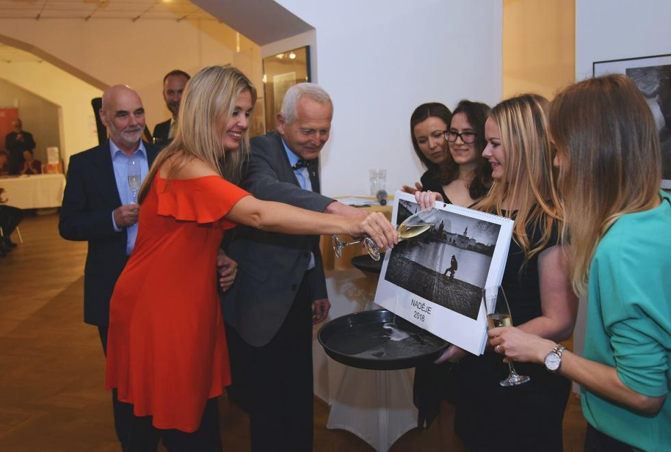 Také jsme pokřtili kalendář NADĚJE 2018 s fotografiemi Jiřího Šourka, za aktivní účasti jeho protagonistů, klientů našeho terénního programu, vedoucího této služby Aleše Strnada, kardiologa profesora Jana Pirka, členů Národního divadla baletky Marty Drastíkové a herce Radúze Máchy, iniciátora projektu Vojtěcha Sedláčka, harfenistky Kateřiny Englichové a hobojisty Viléma Veverky. Tito naposled, ale rozhodně ne v poslední řadě, jmenovaní hudebníci zpříjemnili večer i svým uměním.