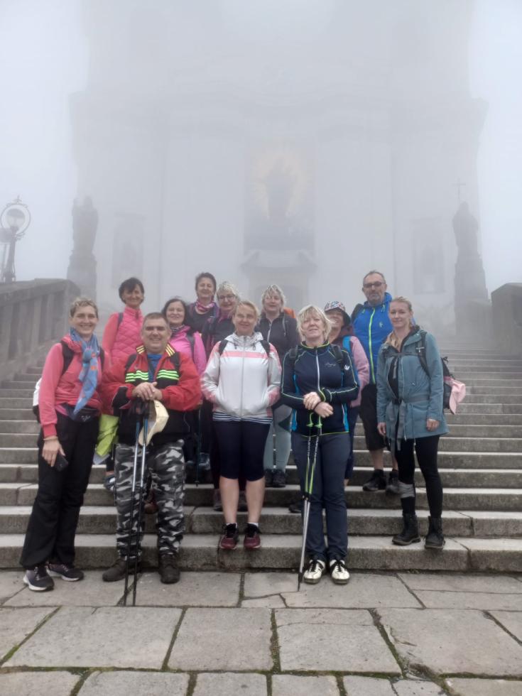 Večer jsme strávili v sálku v poutním domě a ocenili zázemí, které jsme mohli využít. Ráno jsme se probudili do sváteční neděle, která nám navíc nabídla mimořádný příběh Ježíše a jeho učedníků při proměnění Krista na hoře Tábor. Za celou NADĚJI byla v poutní basilice slavena mše svatá, obě čtení i speciální přímluvné modlitby jsme přednášeli za každého z vás, milí čtenáři. Přestože celou neděli silně pršelo, pro každého účastníka to byl čas pro vzájemné posílení na cestách pracovních i osobních.