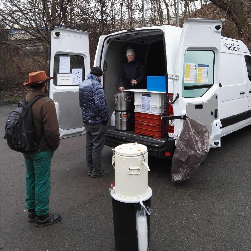 Celkem je v Praze osm výdejních míst. Náš tým výdeje stravy můžete vidět na Žižkově v ulici U Nákladového nádraží Žižkov a v Praze 5 pod Barrandovským mostem.