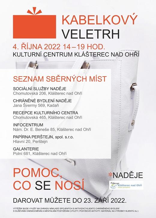 Už tradiční charitativní Kabelkový veletrh se v Klášterci nad Ohří uskuteční v úterý 4. října, pořádat ho budeme v nově zrekonstruovaném kulturním centru města.